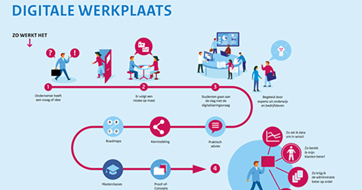 Als mkb-ondernemer kun je bij de Digitale Werkplaats aankloppen voor advies en ondersteuning bij vraagstukken rondom digitalisering. Loop je tegen vragen aan hoe je medewerkers of cliƫnten digitaler krijgt, of moet je aan de slag met een geautomatiseerd systeem? Dan denkt een Digitale Werkplaats graag met je mee hoe je daar de eerste stappen in kunt zetten. In deze publicatie is een overzicht te vinden van alle digitale werkplaatsen in Nederland.