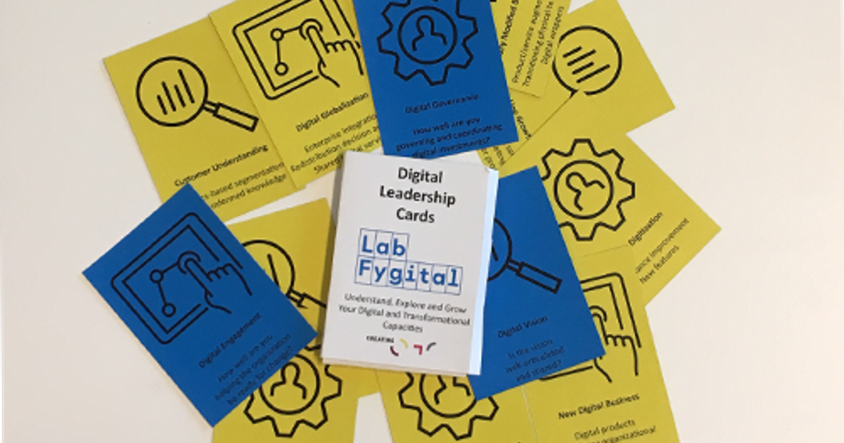 Bij Lab Fygital ontwikkelden ze een kaartspel om de digitale skills van retail-ondernemers te ontdekken en te begrijpen. En vooral om hiermee de digitale transformatie skills van retailers te stimuleren. Met de Digital Leaderships Cards kan je uitvinden welke kennis (blauwe kaartjes) en welke skills (gele kaartjes) je nodig hebt om zo’n omnichannel business te worden. Spelenderwijs doorloopt men 3 ‘levels’. In het eerste level (understand) leert de ondernemer de digitale en ‘tranformatie-skills’ te begrijpen door voorbeelden te bedenken voor concepten die op de verschillende kaarten staan. Bij level 2 (explore) ontdekt de ondernemer waar hij staat, door de kaarten op basis van de eigen onderneming te verdelen in categorieën van beginner tot ervaren ‘digital leaders’. En in het laatste level (Grow) worden er ideeën, trajecten en acties bedacht om specifieke skills uit het vorige level verder te ontwikkelen. Deze worden met elkaar besproken en getoetst door middel van rollenspellen. Door het spelen van dit spel krijgt men meer inzicht in de digitale status quo van de onderneming geef je ondernemers een perspectief op vervolgstappen voor leertrajecten.